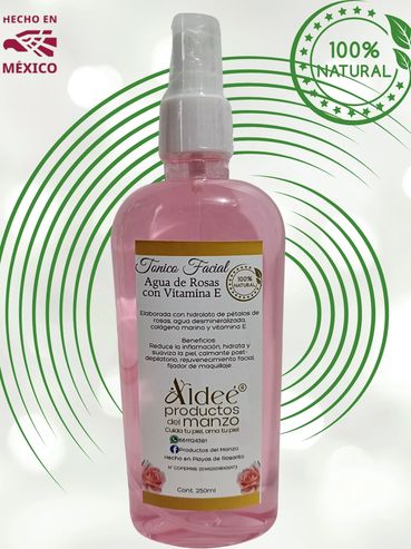 El agua de rosas con vitamina E es un tónico facial natural que hidrata, refresca y revitaliza la piel, aportándole suavidad y luminosidad. Combina las propiedades calmantes y equilibrantes del agua de rosas con el poder antioxidante de la vitamina E, ayudando a proteger la piel de los radicales libres y el envejecimiento prematuro.